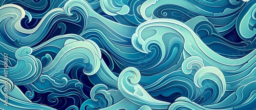 Panoramic close-up, high detail scan of cartoon wave pattern material, Generative AI
