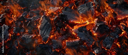 Panoramic close-up, high detail scan of ember fire texture, Generative AI