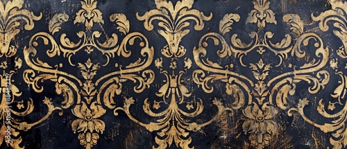 Panoramic close-up, high detail scan of vintage patterned wallpaper texture, Generative AI