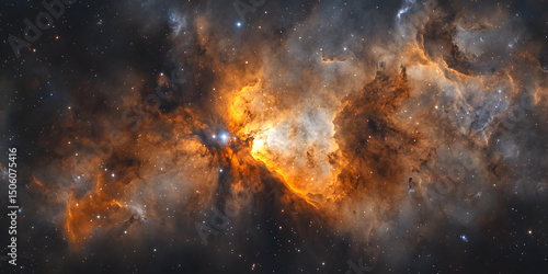 Panoramic cosmic nebula with glowing stars and celestial clouds wide-angle deep space environment