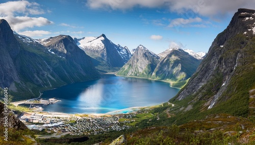 Panoramic shot from Norway, Andalsnes, Romsdalen Rauma, Eggen, View to trollstigen