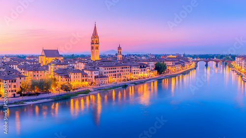 panoramic summer view of Verona' s historic town with view of river Adige and bridges