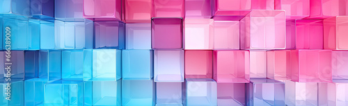 Panoramic texture background with random 3d cubic crystal boxes in bright blue and red colors
