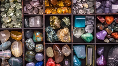 Panoramic top view of the gemstone storage box, gemstone collection
