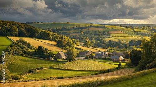scenic, charming, rural, crop, rolling, countryside, landscape, sky, idylli, serenity, horizon, light, colourful, nature, cloud, house, green, picturesque, meadow, panorama, vibrant, tranquil, summer, tree, farmland, vale, hill, gentle, village, gold, sunlight, field, daylight, farm