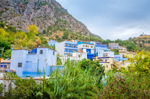 Panoramic view of blue medina of city Chefchaouen, Morocco, Africa.