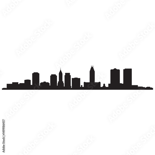 Panoramic View of Downtown Syracuse Skyline. Syracuse city black silhouette skyscrapers and buildings. Long cityscape. Vector black silhouette. with white background