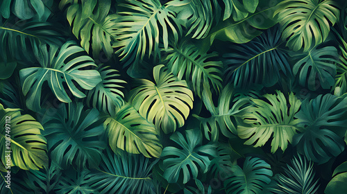 Panoramic view of lush tropical rainforest canopy. Lush Jungle Canopy. Illustration