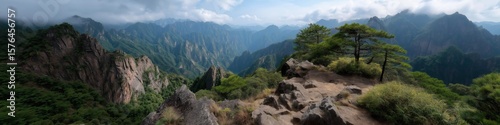 panoramic, majestic, mountain, range, verdant, forested, vale, landscape, nature, scenery, wilderness, serene, sky, cloud, greenery, outdoors, hiking, exploration, adventure, peak, cliff, terrain, tree, lush, environment, tranquil, horizon, picturesque, breathtaking, geologic, formation, ecosystem, biodiversity, travel, tour tourism, natural, beauty, rugged, summit, flora, fauna, scenic, vista, panorama, elevation, stunning
