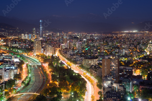 santiago, skyline, city landscape, aerial view, river, skyscraper, up high, andes, architecture, building, building exterior, chile, chilean, city, mountain, mountain chain, night, office tower, business building, light, america, capital city, destination, financial district, highrise, latin america, latin america, subway, night scene, no people, outdoors, overview, south america, south american, travel destination, urban, water