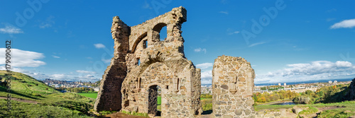 Panoramic view of the ruins of St. Anthony's Chapel. Edinburgh, Scotland, UK.