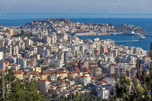 Panoramic view to city of Kavala, East Macedonia and Thrace, Greece