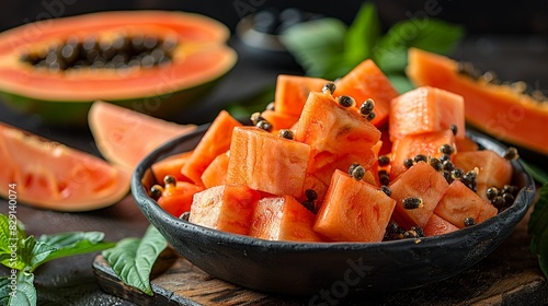 papaya, its, vibrant, orange, flesh, sweet, eaten, fresh, or, minimal, simple, style