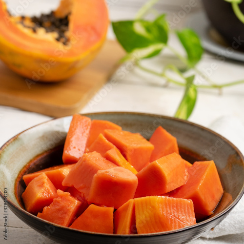 Papaya fruit cutted on white background