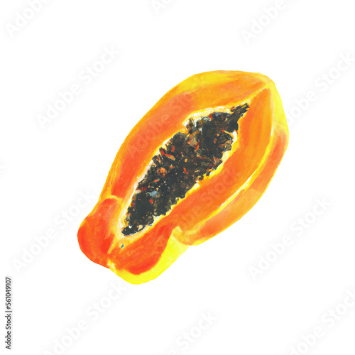 Papaya isolated on a white background. Hand drawn, watercolors. Primitive retro vintage style, ai generating