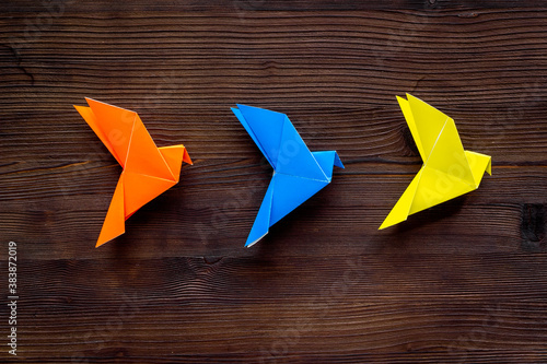 Paper birds of different shades. Origami concept. Top view
