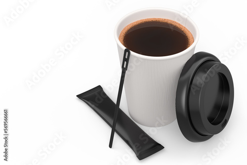 Paper coffee cup with cover, sugar, coffee bean and stick for americano espresso