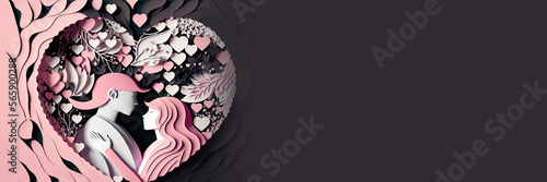 paper cut style Cute couple in love hugging with many hearts floating. Pink, white, red, pastel
