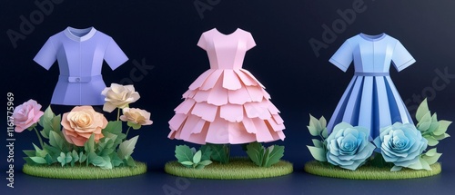 Paper Dress Flowers Fashion Design Craft 3D Render Pastel Colors Floral Decor