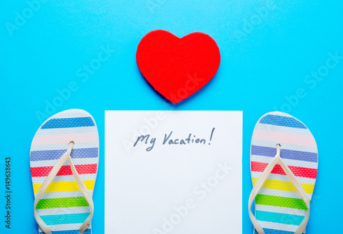 accessory, sandal, shoe, sheet, paper, my, vacation, plan, nubes, shaped, toy, love, symbol, play, fun, write, draw, sale, buying, style, cute, shop, stylish, fashion, look, beach, rest, flip-flop, design, beauty, beautiful, pleasant, marvellously, fantastic, blue, studio, point of view, background