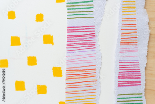 paper with color pencil stripes and