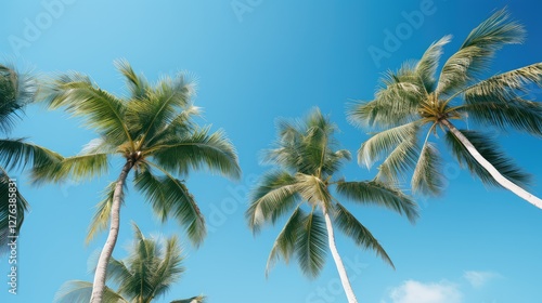 paradise, palm, tree, blue, sky, illustration, tropical, relaxation, wind, crystal, clear, calmness, photo, flocked, sway, image, thought, sense, serene, scenic, coastal, exotic, leaf, frond, beach, summer, calm, bliss