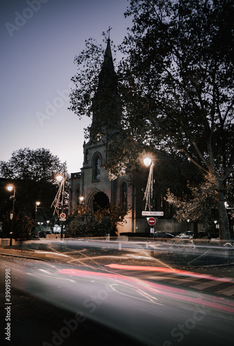 Paris, France - 11/07/2020: a car driving fast next to a church