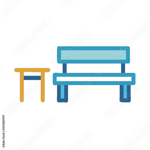 Park Bench and Side Table Simple Icon Illustration