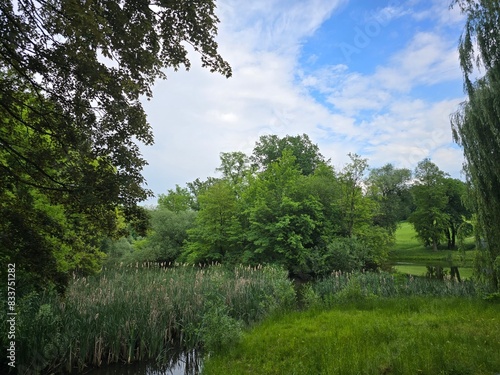 nature, heaven, river, summer, green, grass, forest, cloud, day, countryside, outdoors, spring, field, blue, view, beautiful, tree, lake, water, garden