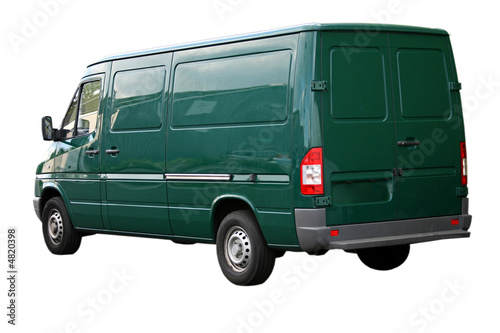 green, van, cargo, delivery, haulage, builder, commercial, parked, isolated, clipping, path, deliver, clean, unmarked, haul, load, logistic, plain, side, unit, diesel, door, window, glasses, reflections, wheel, tire, tyre, slide, wing, mirror