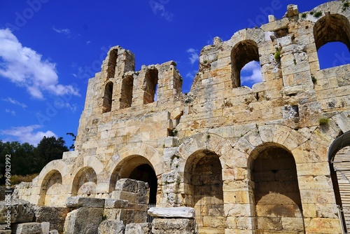 Part of the outer wall of the Odeon of Herodes Atticus, or Herodeon, in Athens, Greece