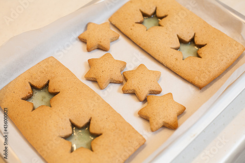 Parts of Christmas gingerbread house. Handmade. Christmas gingerbread house. Fresh baked