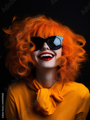 orange, colours, hair, sunglasses, smiling, happy, costume, make-up, 1, single, lady, young, drink, glasses, person, woman, glamour, party, theme, sexy, girl, model, fantasy, game, concept, black, night, beautiful, ball, entertainment, club, female, attractive, closeup, playing, real, realistic, fictional, isolated, style, birthday, celebration, cocktail, drinking, bar, enjoying