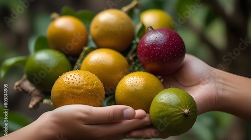 Passion fruit selection hand holding fresh fruit with.generative.ai