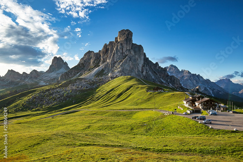 Passo Giau, popular travel destination in Dolomites, at sunset
