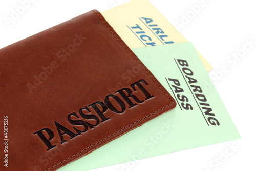 ticket, airline, aeroplane, background, board, boarding, booklet, brown, business, closeup, consumer, document, flight, fly, holiday, international, leather, macro, new, nobody, object, pass, passport, symbol, tour tourism, holiday maker, travel, traveler, vacation, white