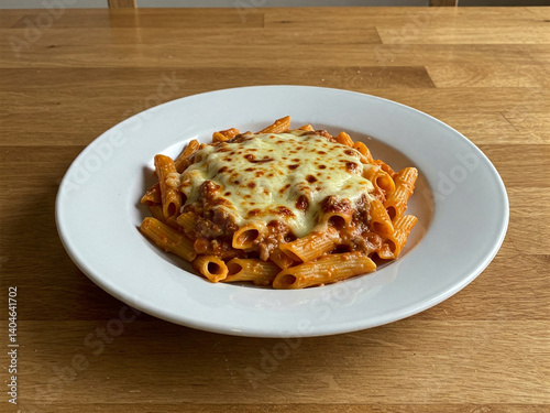 Pasta al Forno, a classic Italian baked pasta dish, served on a pristine white plate.