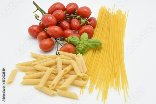 food, dough, tomatoes, noodle, italian, vegetable, healthy, white, basil, fresh, ingredient, raw, meal, garlic, red, isolated, yellow, cooking, diet, italy, lunch, macaroni, green, dinner, kitchen