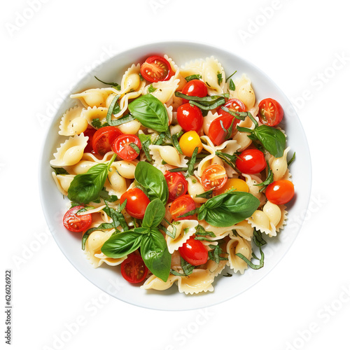 Pasta with tomato, mushrooms, vegetables and basil on transparent background Remove png created with Generative AI, Clipping Path