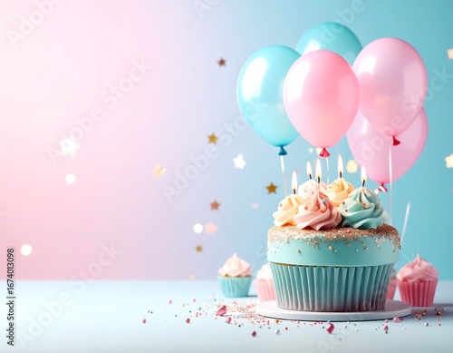 birthday, cake, cupcake, balloon, party, celebration, pastel, pink, blue, sweet, dessert, treat, children, children, fun, colourful, delicious, happy, festive, decoration, gift, pretty