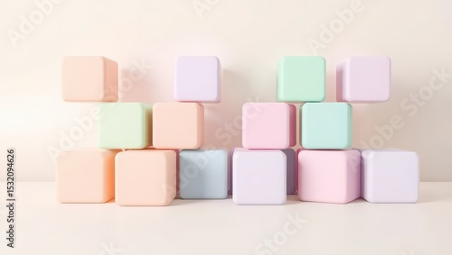 Pastel colored cubes stacked in a pyramid shape on a light background in a studio setting