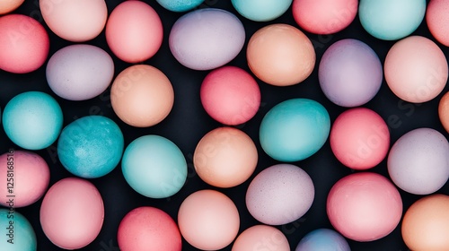Pastel Colored Easter Eggs on a Dark Background Overhead Colorful and Festive Holiday Decoration