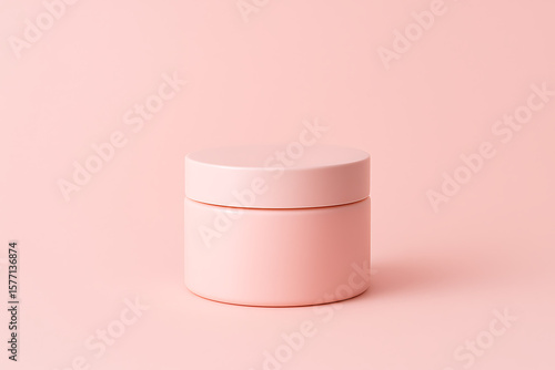 jar, pastel, pink, cream, skincare, cosmetic, container, product, cardboard box, lid, round, minimal, clean, background, beauty, smooth, glossy, design, branding, elegant, simple, matte, modern, colours, display, soft, realistic, closed, light, isolated, presentation, object, health, care, luxury, white, bottle, cosmetic, plastic, face