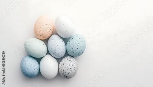easter, egg, pastel, spring, holiday, celebration, colourful, decoration, background, design, texture, speckled, painted, happy, springtime, festive, card, banner, image, graphic, illustration, template, pattern, motif, pretty, delicate, light, airy, bright, white background, minimal, simple, overhead, topview, food photography, easter bunny