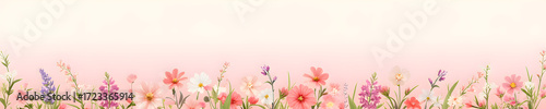 Pastel floral border with blossoms on gradient background, nature's beauty