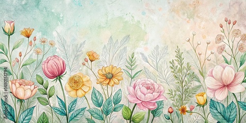 floral, pastel, line art, vignetting, spring, delicate, flower, art, drawing, design, background, texture, illustration, hand-drawn, watercolor, soft, vintage, romantic, aesthetic, pretty, elegant, feminine, whimsical, nature, botanical, floral pattern, home decor, greeting card, wedding invitation, fabric design, floral pattern
