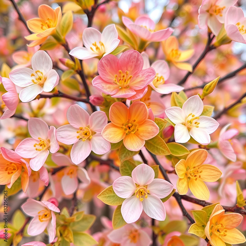 pastel flowers bloom vibrant patterns leaves twigs creating beautiful colorful display spring beauty