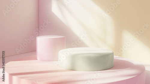 Pastel fluffy soft Wool Pink Yellow Podium with Dreamy Diffused Lighting for Product Display Background