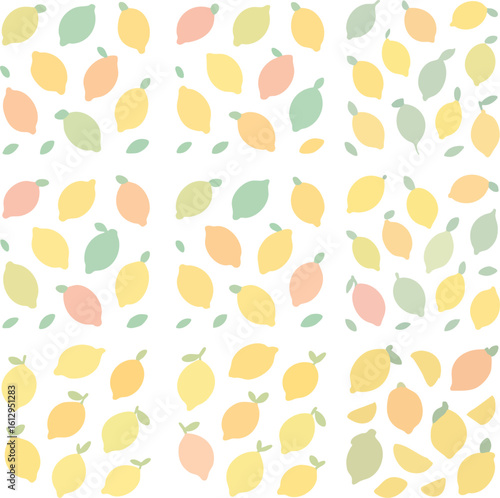 Pastel lemon fruit seamless pattern collection.