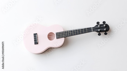 ukulele, pink, instrument, music, musical, guitar, string, acoustic, sound, melody, chord, song, learn, play, beginner, practice, hobby, cute, children, gift, accessory, tutorial, online, digital, three-dimensional, design, illustration, image, graphic, minimal, modern, aesthetic, pastel, colours, isolated, background, simple, creative, photo